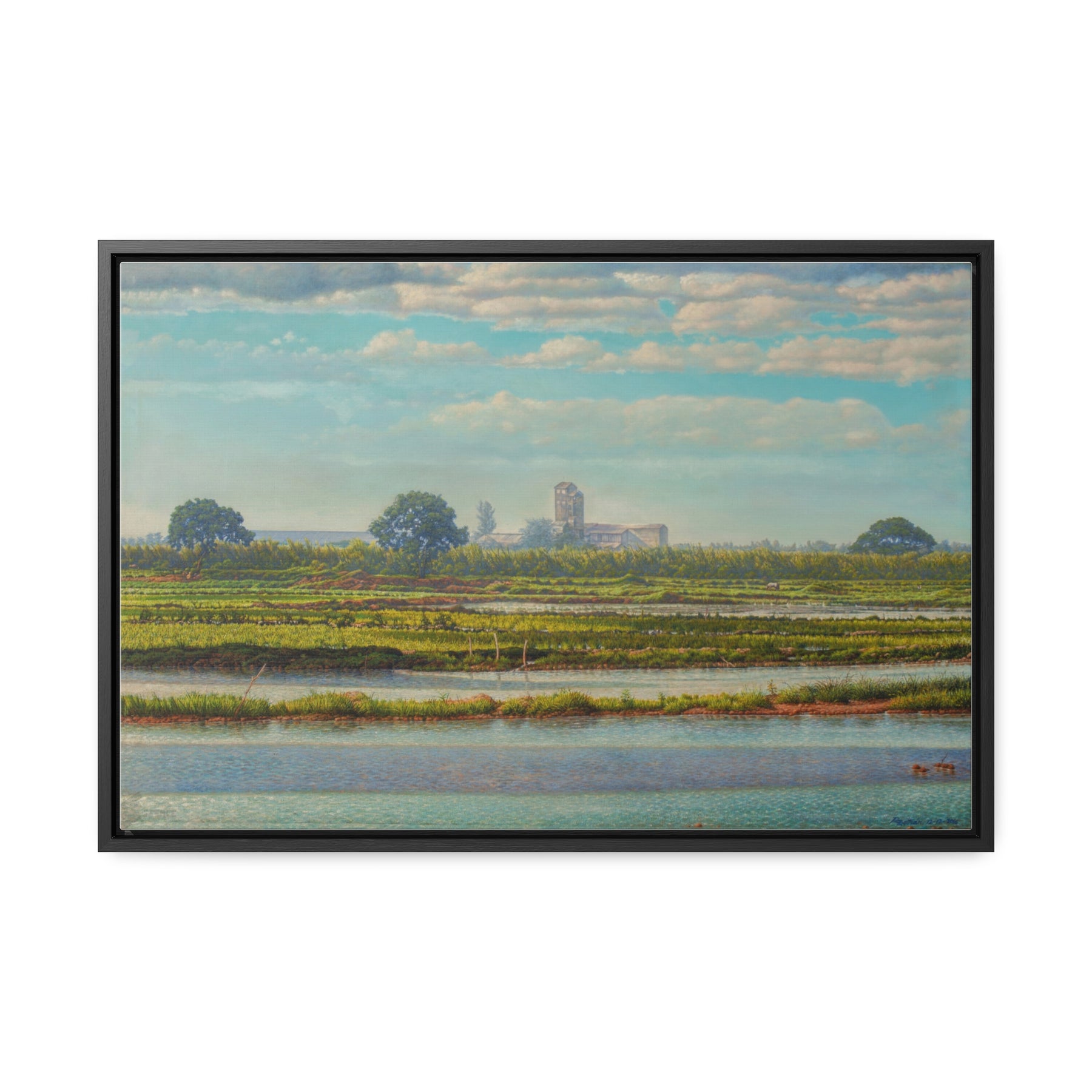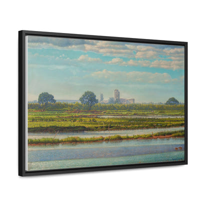 Answer 2: The canvas is made from 100% cotton fabric, ensuring high image quality and detail. The frame is constructed from poplar wood, which is available in walnut or black finishes.